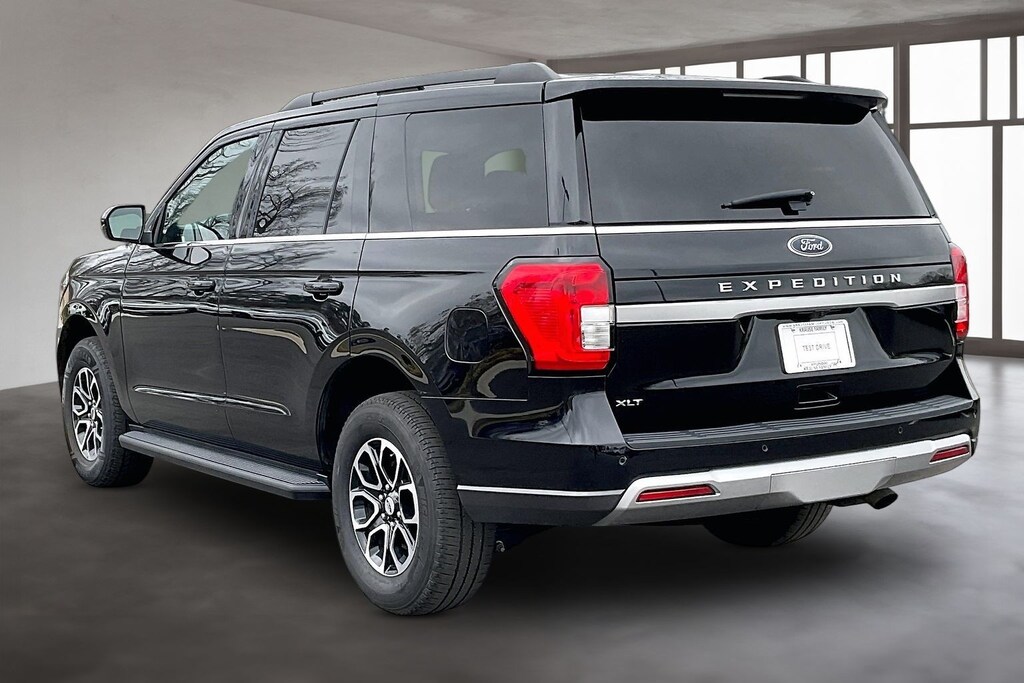 Black Metallic 2024 Ford Expedition XLT 4WD 10-Speed Automatic EcoBoost 3.5L V6 GTDi DOHC 24V Twin Turbocharged 4WD, 110V/150W AC Power Outlet, 18" Machined-Face Aluminum Wheels, 2nd Row Power-Folding Captain's Chairs, 3.31 Axle Ratio, 3rd row seats: split-bench, 3rd Row Vinyl Head Restraints, 4-Door Intelligent Access (Lock/Unlock), 4-Wheel Disc Brakes, 6 Speakers, ABS brakes, Accent Color Painted Rear Bumper, ActiveX-Trimmed 1st & 2nd Row Seats, Advanced Security Pack, Air Conditioning, AM/FM radio: SiriusXM with 360L, Ambient Lighting, Auto High-beam Headlights, Auto-dimming Rear-View mirror, Automatic temperature control, Brake assist, Bumpers: body-color, Cloth Front Captain's Chairs, Compass, Delay-off headlights, Driver door bin, Driver vanity mirror, Dual front impact airbags, Dual front side impact airbags, Electronic Stability Control, Emergency communication system: SYNC 4 911 Assist, Equipment Group 202A High Package, Exterior Parking Camera Rear, Four wheel independent suspension, Front anti-roll bar, Front Bucket Seats, Front Center Armrest, Front dual zone A/C, Front License Plate Bracket, Front reading lights, Fully automatic headlights, Garage door transmitter, Heated door mirrors, Heated Steering Wheel, Heated/Ventilated Front Seats, Illuminated entry, Leather steering wheel, Low tire pressure warning, Navigation system: Connected Navigation, Occupant sensing airbag, Outside temperature display, Overhead airbag, Overhead console, Panic alarm, Passenger door bin, Passenger vanity mirror, Power door mirrors, Power driver seat, Power Liftgate, Power steering, Power Tilt/Telescopic Steering Wheel w/Memory, Power windows, Power-Adjustable Pedals w/Memory, Power-Folding Sideview Mirrors w/Autofold, Radio data system, Radio: AM/FM Stereo w/MP3 Capable, Rear air conditioning, Rear anti-roll bar, Rear reading lights, Rear window defroster, Rear window wiper, Reclining 3rd row seat, Remote keyless entry, Remote Start, SecuriCode Keyless Entry Pad, Security system, SiriusXM w/360L, Speed control, Speed-sensing steering, Speed-Sensitive Wipers, Split folding rear seat, Spoiler, Steering wheel mounted audio controls, SYNC 4 w/Enhanced Voice Recognition, Tachometer, Telescoping steering wheel, Tilt steering wheel, Traction control, Trip computer, Variably intermittent wipers, Voltmeter, Wireless Charging Pad.