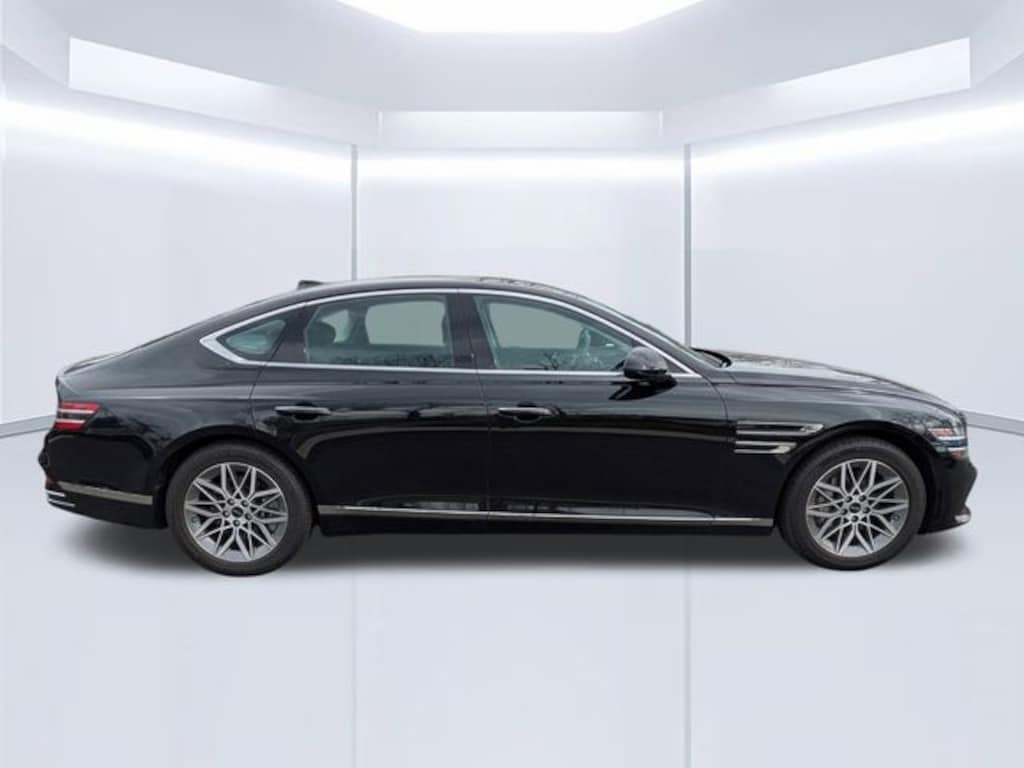 Certified. Vik Black 2025 Genesis G80 2.5T AWD AWD 8-Speed Automatic I4 12 Speakers, 4-Wheel Disc Brakes, ABS brakes, Alloy wheels, Android Auto & Apple CarPlay, Anti-whiplash front head restraints, Auto High-beam Headlights, Auto tilt-away steering wheel, Auto-dimming Rear-View mirror, Automatic temperature control, Delay-off headlights, Driver vanity mirror, Dual front impact airbags, Dual front side impact airbags, Electronic Stability Control, Emergency communication system: Genesis Connected Services, Exterior Parking Camera Rear, Four wheel independent suspension, Front anti-roll bar, Front Bucket Seats, Front Center Armrest, Front dual zone A/C, Front reading lights, Fully automatic headlights, Garage door transmitter: HomeLink, Heated Front Bucket Seats, Heated front seats, Heated rear seats, Heated steering wheel, Illuminated entry, Knee airbag, Leather steering wheel, Leatherette Seating Surfaces, Low tire pressure warning, Memory seat, Navigation System, Occupant sensing airbag, Option Group 01, Outside temperature display, Overhead airbag, Overhead console, Passenger vanity mirror, Power passenger seat, Radio: AM/FM/HD/SiriusXM Audio System, Rain sensing wipers, Rear anti-roll bar, Rear seat center armrest, Rear side impact airbag, Remote keyless entry, Speed-Sensitive Wipers, Steering wheel memory, Steering wheel mounted audio controls, Telescoping steering wheel, Tilt steering wheel, Traction control, Variably intermittent wipers.