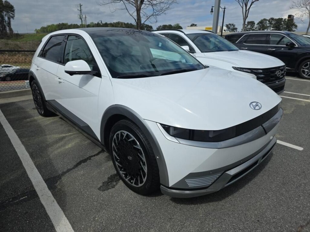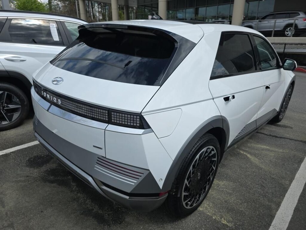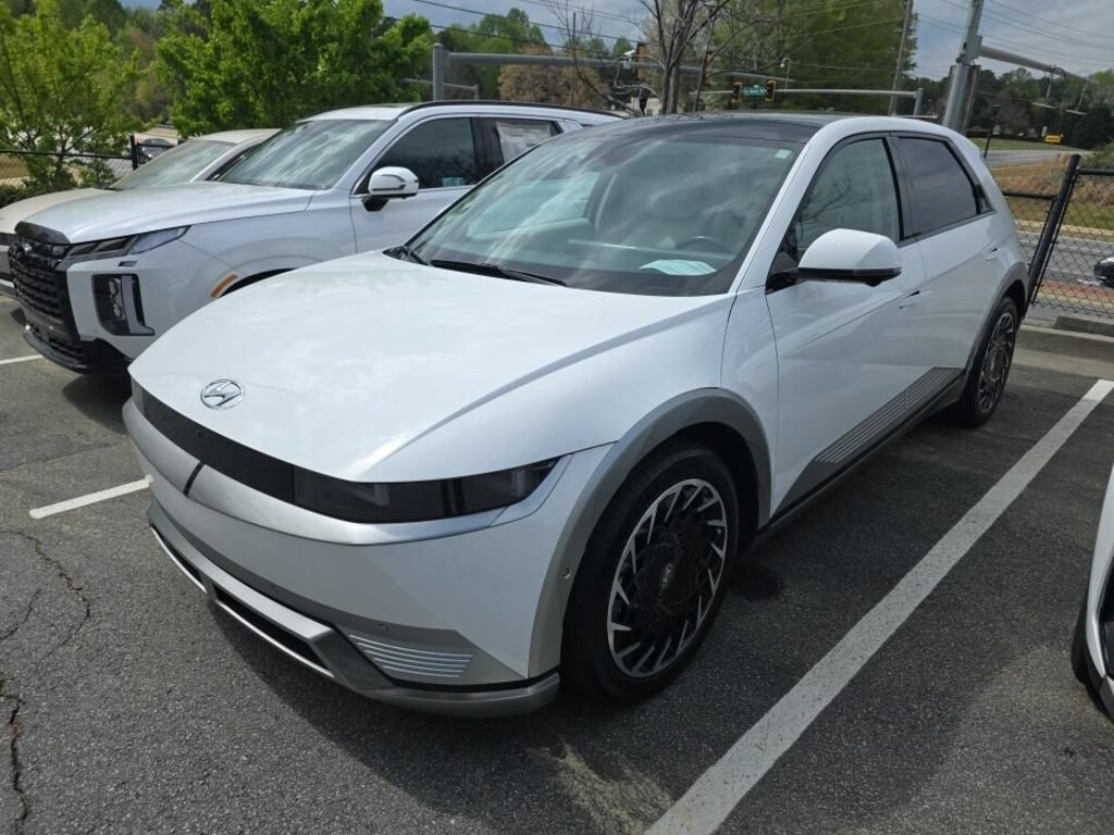 Certified. Atlas White 2023 Hyundai IONIQ 5 Limited AWD 1-Speed Automatic Electric Motor 4-Wheel Disc Brakes, 8 Speakers, ABS brakes, Apple CarPlay & Android Auto, Auto High-beam Headlights, Auto-dimming Rear-View mirror, Automatic temperature control, Bumpers: body-color, Cargo Net, Cargo Package, Delay-off headlights, Dual front impact airbags, Dual front side impact airbags, Electronic Stability Control, Emergency communication system: Blue Link Connected Car Service (3-year complimentary subscription), Exterior Parking Camera Rear, First Aid Kit, Four wheel independent suspension, Front anti-roll bar, Front Bucket Seats, Front dual zone A/C, Fully automatic headlights, Garage door transmitter: HomeLink, H-Tex Leatherette Seating Surfaces, Heads-Up Display, Heated & Ventilated Front Bucket Seats, Heated door mirrors, Heated front seats, Heated steering wheel, Leather steering wheel, Low tire pressure warning, Navigation System, Occupant sensing airbag, Option Group 01, Outside temperature display, Overhead airbag, Power door mirrors, Power Liftgate, Power passenger seat, Radio: AM/FM/SiriusXM/HD Display Audio System, Rain sensing wipers, Rear anti-roll bar, Rear reading lights, Rear seat center armrest, Remote keyless entry, Speed-sensing steering, Split folding rear seat, Steering wheel mounted audio controls, Telescoping steering wheel, Tilt steering wheel, Traction control, Trip computer, Turn signal indicator mirrors, Up Seatback Cargo Mat, Variably intermittent wipers, Ventilated front seats, Wheels: 20" x 8.5J Aero Alloy.