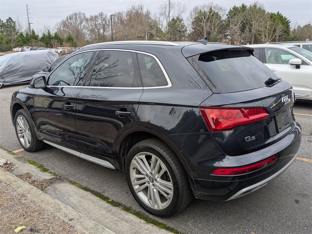 2018 Audi Q5 2.0T quattro quattro 7-Speed Automatic S tronic 2.0L TFSI Black Leather, 10 Speakers, 12-Way Power Front Sport Seats, 3-Step Front Seat Ventilation, 3-Step Heated Front Seats, 4-Wheel Disc Brakes, 5.302 Axle Ratio, 8-Way Power Front Bucket Seats, ABS brakes, Air Conditioning, Alloy wheels, AM/FM radio: SiriusXM, Audi Beam-Rings, Audi Guard All-Weather Floor Mats (Set of 4), Audi Side Assist w/Pre Sense Rear, Audi smartphone interface (Apple CarPlay/Android Auto), Auto-dimming door mirrors, Auto-dimming Rear-View mirror, Automatic temperature control, Black Privacy Trunk Cover, Brake assist, Bumpers: body-color, Compass, Delay-off headlights, Delete Front License Plate Holder, Driver door bin, Driver vanity mirror, Dual front impact airbags, Dual front side impact airbags, DVD-Audio, Electronic Stability Control, Emergency communication system: Audi connect CARE, Exterior Parking Camera Rear, Four wheel independent suspension, Front anti-roll bar, Front Bucket Seats, Front Center Armrest, Front dual zone A/C, Front fog lights, Front reading lights, Full LED Headlights, Garage door transmitter: HomeLink, Genuine wood console insert, Genuine wood dashboard insert, Genuine wood door panel insert, Heated door mirrors, High Gloss Window Surrounds, High intensity discharge headlights: Xenon plus, Illuminated entry, Leather Seating Surfaces, Leather Shift Knob, Leather steering wheel, Low tire pressure warning, Manual Rear Side Window Sunshades, Memory seat, Navigation System, Occupant sensing airbag, Outside temperature display, Overhead airbag, Overhead console, Panic alarm, Panoramic Sunroof w/Tilt/Slide & Power Sunshade, Parking System Plus (Front/Rear Acoustic Sensors), Passenger door bin, Passenger vanity mirror, Power door mirrors, Power driver seat, Power Liftgate, Power passenger seat, Power steering, Power windows, Premium Plus Package, Radio data system, Radio: MMI Navigation Plus System, Rain sensing wipers, Rear air conditioning, Rear anti-roll bar, Rear Cross Traffic Assist, Rear fog lights, Rear reading lights, Rear seat center armrest, Rear window defroster, Rear window wiper, Remote keyless entry, Roof rack, Security system, SiriusXM All Access Service, Speed control, Speed-sensing steering, Speed-Sensitive Wipers, Split folding rear seat, Spoiler, Stainless Steel Door Sills, Steering wheel mounted audio controls, Tachometer, Telescoping steering wheel, Tilt steering wheel, Traction control, Trip computer, Turn signal indicator mirrors, USB Cables, Variably intermittent wipers, Vehicle Exit Assist, Warm Weather Package, Wheels: 8" x 18" 5-Double-Spoke Dynamic Design, Wheels: 8" x 20" 5-Spoke Segment Design, Black Leather.