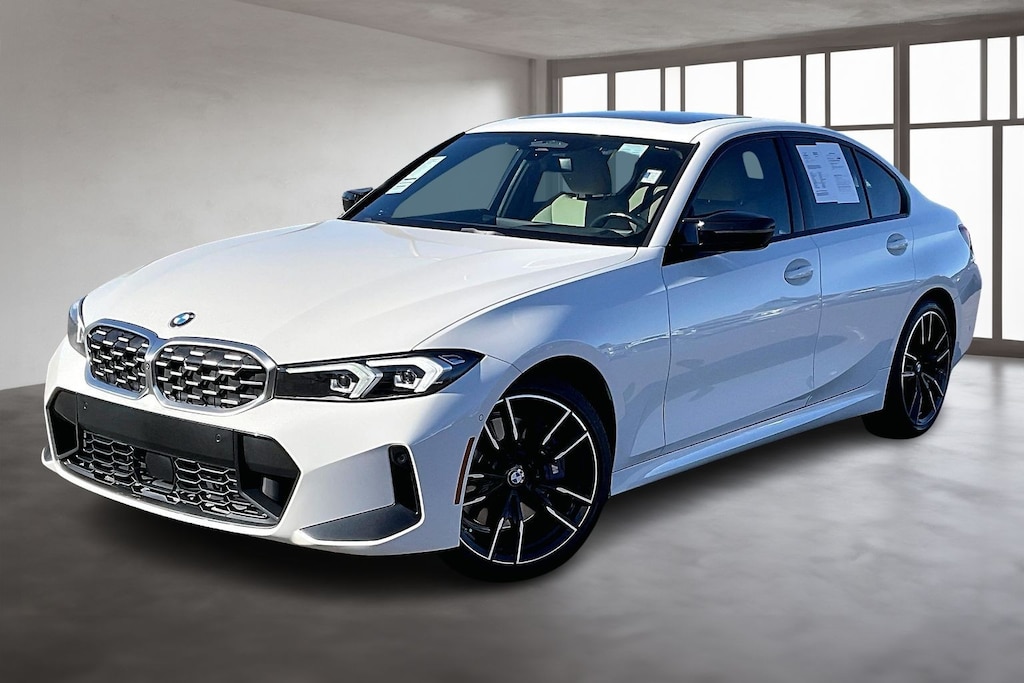 Alpine White 2023 BMW 3 Series M340i xDrive AWD 8-Speed Automatic Sport 3.0L I6 AWD, 10 Speakers, 4-Wheel Disc Brakes, ABS brakes, Active Driving Assistant Pro, Active Park Distance Control, Adaptive M Suspension, Air Conditioning, AM/FM radio: SiriusXM, Apple CarPlay & Android Auto Compatibility, Apple CarPlay Compatibility, Auto High-beam Headlights, Auto-dimming door mirrors, Auto-dimming Rear-View mirror, Automatic temperature control, BMW Assist eCall, BMW Curved Display, BMW Curved Display w/HUD, BMW TeleServices, Brake assist, Bumpers: body-color, Compass, Connected Package Pro, ConnectedDrive Services, Delay-off headlights, Driver door bin, Driver Lumbar Support, Driver vanity mirror, Dual front impact airbags, Dual front side impact airbags, Electronic Stability Control, Emergency communication system: BMW Assist eCall, Enhanced USB & Bluetooth Plus Smartphone Integration, Extended Traffic Jam Assistant, Exterior Parking Camera Rear, Four wheel independent suspension, Front anti-roll bar, Front Bucket Seats, Front Center Armrest, Front dual zone A/C, Front reading lights, Fully automatic headlights, Garage door transmitter, harman/kardon Surround Sound System, Heated door mirrors, Heated Front Seats, Heated Steering Wheel, Hi-Fi Sound System, High Gloss Fine Wood Ash Grey-Brown Trim, Illuminated entry, Knee airbag, Leather Shift Knob, Leather steering wheel, Low tire pressure warning, Memory seat, Navigation System, Occupant sensing airbag, Outside temperature display, Overhead airbag, Panic alarm, Parking Assistant Plus, Passenger door bin, Passenger vanity mirror, Perforated Sensatec Upholstery, Power door mirrors, Power driver seat, Power Front Seats, Power moonroof, Power passenger seat, Power steering, Power windows, Radio data system, Radio: AM/FM Audio System, Rain sensing wipers, Rear air conditioning, Rear anti-roll bar, Rear reading lights, Rear seat center armrest, Rear window defroster, Rear-View Camera, Remote keyless entry, Security system, Sensatec Dashboard, SiriusXM Satellite Radio w/1 Year Subscription, Speed control, Speed-sensing steering, Speed-Sensitive Wipers, Split folding rear seat, Spoiler, Sport Seats, Sport steering wheel, Steering wheel mounted audio controls, Surround View w/3D View, Tachometer, Telescoping steering wheel, Tilt steering wheel, Traction control, Trip computer, Turn signal indicator mirrors, Variably intermittent wipers, Wheels: 18" x 7.5" M Double-Spoke Bicolor, Widescreen Display.
