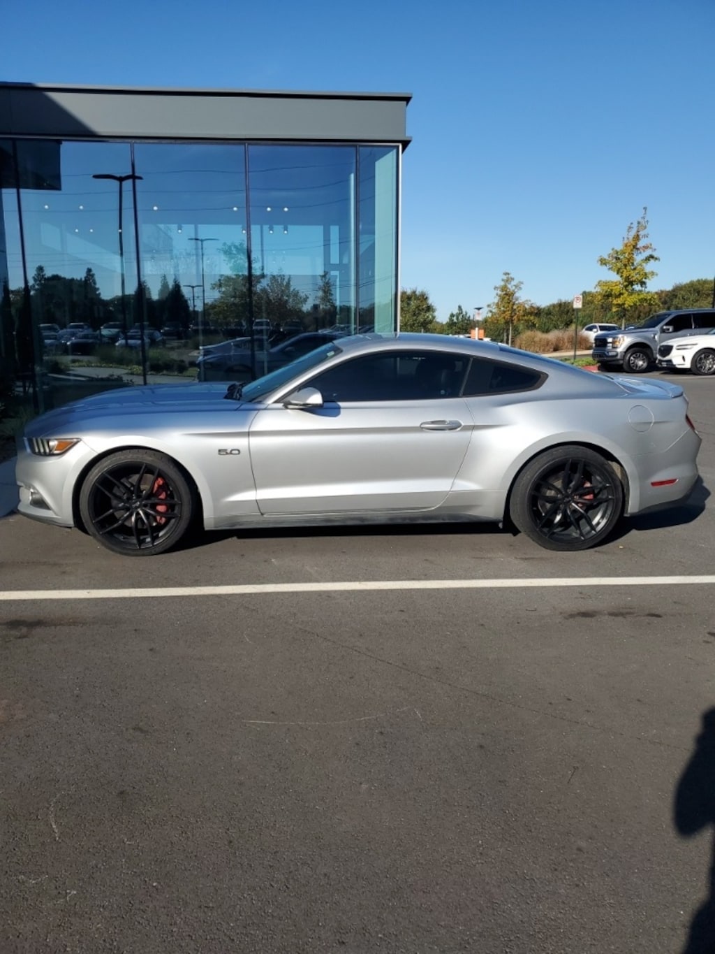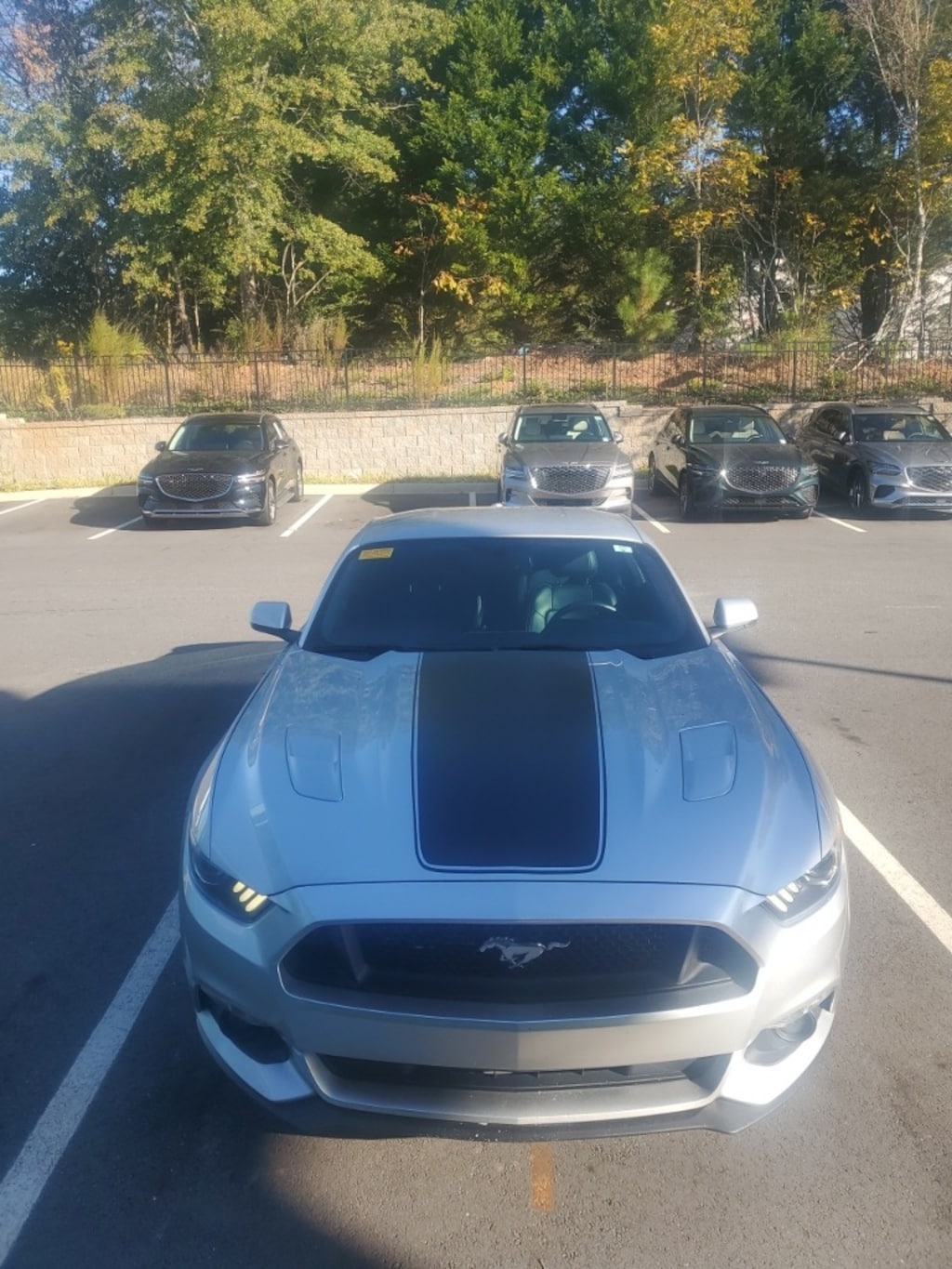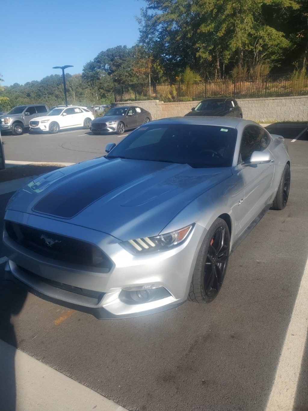 2017 Ford Mustang GT RWD 6-Speed 5.0L V8 Ti-VCT 4-Wheel Disc Brakes, ABS brakes, Air Conditioning, Alloy wheels, AM/FM Stereo w/Single CD Player, Auto-dimming Rear-View mirror, Block heater, Brake assist, Bumpers: body-color, CD player, Compass, Delay-off headlights, Driver door bin, Driver vanity mirror, Dual front impact airbags, Dual front side impact airbags, Electronic Stability Control, Emergency communication system: 911 Assist, Exterior Parking Camera Rear, Four wheel independent suspension, Front anti-roll bar, Front Bucket Seats, Front Center Armrest, Front fog lights, Front reading lights, Fully automatic headlights, High-Intensity Discharge Headlights, Illuminated entry, Knee airbag, Low tire pressure warning, Occupant sensing airbag, Outside temperature display, Overhead airbag, Overhead console, Panic alarm, Passenger door bin, Passenger vanity mirror, Power door mirrors, Power driver seat, Power passenger seat, Power steering, Power windows, Radio data system, Rear anti-roll bar, Rear window defroster, Remote keyless entry, Security system, Speed control, Speed-sensing steering, Speed-Sensitive Wipers, Split folding rear seat, Steering wheel mounted audio controls, Tachometer, Telescoping steering wheel, Tilt steering wheel, Traction control, Trip computer, Variably intermittent wipers, Voltmeter, Wheels: 18" x 8" Magnetic Painted/Machined.