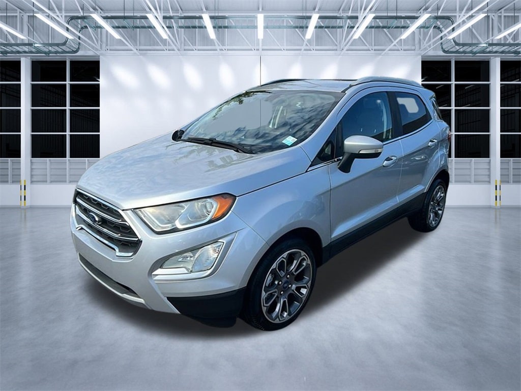 2020 Ford EcoSport Titanium FWD 6-Speed Automatic EcoBoost 1.0L I3 GTDi DOHC Turbocharged VCT 10 Speakers, 3.44 Axle Ratio, 4-Wheel Disc Brakes, ABS brakes, Air Conditioning, Alloy wheels, AM/FM radio: SiriusXM, AppLink/Apple CarPlay and Android Auto, Auto-dimming Rear-View mirror, Automatic temperature control, Brake assist, Bumpers: body-color, Compass, Delay-off headlights, Driver door bin, Driver vanity mirror, Dual front impact airbags, Dual front side impact airbags, Electronic Stability Control, Emergency communication system: SYNC 3 911 Assist, Equipment Group 400A, Exterior Parking Camera Rear, Front anti-roll bar, Front Bucket Seats, Front Center Armrest, Front fog lights, Front reading lights, Front wheel independent suspension, Fully automatic headlights, Heated door mirrors, Heated front seats, Heated steering wheel, Illuminated entry, Knee airbag, Leather Shift Knob, Leather steering wheel, Low tire pressure warning, Navigation System, Occupant sensing airbag, Outside temperature display, Overhead airbag, Overhead console, Panic alarm, Passenger door bin, Passenger vanity mirror, Perforated Leather-Trimmed Heated Bucket Seats, Power door mirrors, Power driver seat, Power moonroof, Power steering, Power windows, Radio data system, Radio: AM/FM Stereo w/MP3 Capable, Rain sensing wipers, Rear Parking Sensors, Rear seat center armrest, Rear side impact airbag, Rear window defroster, Rear window wiper, Remote keyless entry, Roof rack: rails only, Security system, SiriusXM Radio, SiriusXM Traffic & Travel Link, Speed control, Speed-sensing steering, Split folding rear seat, Steering wheel mounted audio controls, SYNC 3 Communications & Entertainment System, Tachometer, Telescoping steering wheel, Tilt steering wheel, Traction control, Trip computer, Turn signal indicator mirrors, Variably intermittent wipers, Wheels: 17" Premium Dark Stainless-Painted.