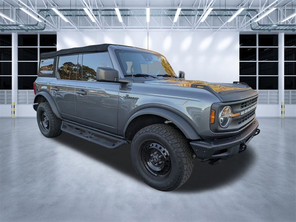 2022 Ford Bronco Wildtrak 4WD 10-Speed Automatic 2.7L EcoBoost V6 12" LCD Capacitive Touchscreen w/Swipe Capability, 2 Smart Charging USB Ports In Dashboard, 360-Degree Camera, 4-Wheel Disc Brakes, 4.7 Axle Ratio, 6 Speakers, ABS brakes, Adaptive Cruise Control, Additional Sound Deadening, Air Conditioning, Alloy wheels, AM/FM radio: SiriusXM with 360L, AM/FM Stereo, Auto High-beam Headlights, Auto-dimming Rear-View mirror, Automatic temperature control, Brake assist, Brush Guard, Carbonized Gray Molded-In-Color Hard Top, Compass, Connected Built-In Navigation, Connected Navigation, Delay-off headlights, Driver door bin, Driver vanity mirror, Dual front impact airbags, Dual front side impact airbags, Electronic Stability Control, Emergency communication system: 911 Assist, Equipment Group 354A Lux Package, Evasive Steering Assist, Exterior Parking Camera Rear, Ford Performance Heavy-Duty Modular Front Bumper, Front & Rear Floor Liners, Front anti-roll bar, Front Bucket Seats, Front Center Armrest, Front dual zone A/C, Front fog lights, Front Parking Sensors, Front reading lights, Front Row Top Panels & Door Storage Bags, Front Row Top Panels Storage Bag, Front wheel independent suspension, Fully automatic headlights, Hard Top Sound Deadening Headliner, Heated Cloth Bucket Seats, Heated door mirrors, Heated front seats, Heated Steering Wheel, Illuminated entry, Information on Demand Panel, Integrated roll-over protection, Leather Shift Knob, Low tire pressure warning, Navigation system: Connected Navigation, Occupant sensing airbag, Outside temperature display, Overhead airbag, Overhead console, Panic alarm, Passenger door bin, Passenger vanity mirror, Powder Coated Tube Step, Power door mirrors, Power steering, Power windows, Radio data system, Radio: B&O Sound System by Bang & Olufsen, Rear-Window Defroster & Washer, Remote keyless entry, Security system, Sideview Mirrors, SiriusXM Radio w/360L, Speed control, Split folding rear seat, Steering wheel mounted audio controls, SYNC 4, Tachometer, Telescoping steering wheel, Tilt steering wheel, Traction control, Trip computer, Universal Garage Door Opener, Variably intermittent wipers, Voltmeter, Wheels: 17" Black High Gloss-Painted Aluminum, Wireless Charging Pad.