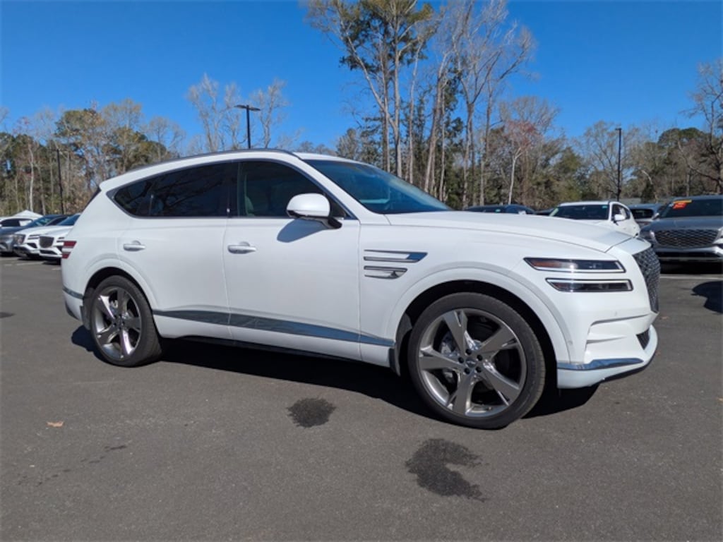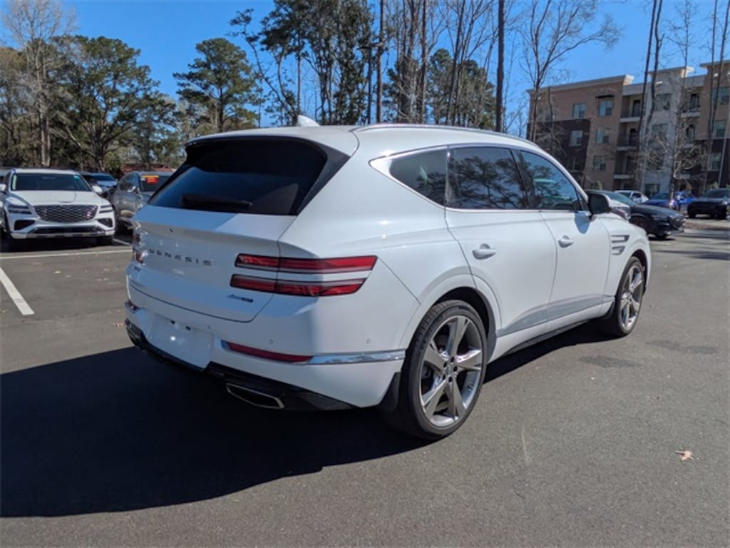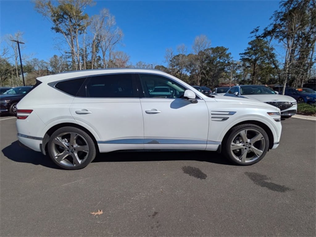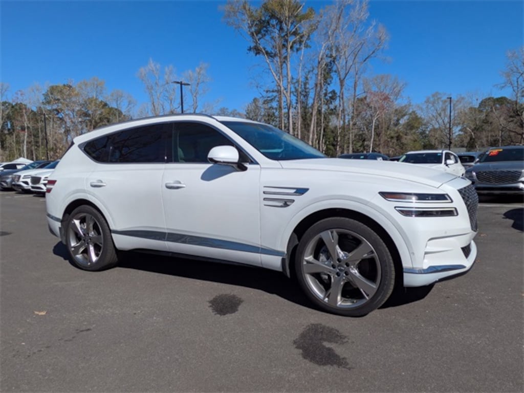 Uyuni White 2024 Genesis GV80 3.5T Prestige AWD 8-Speed Automatic 3.5L DOHC 12 Speakers, 3-Zone Climate Control, 4-Wheel Disc Brakes, ABS brakes, Adaptive suspension, Advanced Package, Android Auto & Apple CarPlay, Anti-whiplash front head restraints, Auto High-beam Headlights, Auto tilt-away steering wheel, Auto-dimming Rear-View mirror, Automatic temperature control, Blind-Spot View Monitor, Brake assist, Cargo Package, Delay-off headlights, Dual front impact airbags, Dual front side impact airbags, Electronic Stability Control, Emergency communication system: Genesis Connected Services, Ergo Motion Driver Seat, Exterior Parking Camera Rear, First Aid Kit, Four wheel independent suspension, Front anti-roll bar, Front Bucket Seats, Front Center Armrest, Front dual zone A/C, Front reading lights, Fully automatic headlights, Garage door transmitter: HomeLink, Genuine wood console insert, Genuine wood dashboard insert, Genuine wood door panel insert, Head-Up Display, Heated & Ventilated Front Bucket Seats, Heated 2nd Row Seats, Heated front seats, Heated steering wheel, Illuminated entry, Knee airbag, Leather steering wheel, Leatherette Seating Surfaces, Low tire pressure warning, Navigation System, Occupant sensing airbag, Option Group 06, Outside temperature display, Overhead airbag, Overhead console, Power Cushion Extension & Bolster, Power Liftgate, Power moonroof, Power passenger seat, Prestige Package, Radio: AM/FM/SiriusXM/HD Lexicon Prem Audio System, Rear anti-roll bar, Rear seat center armrest, Rear side impact airbag, Remote keyless entry, Remote Smart Parking Assist, Reverse Parking Collision-Avoidance Assist, Seatback Cargo Mat, Speed-sensing steering, Split folding rear seat, Steering wheel memory, Steering wheel mounted audio controls, Surround View Monitor, Tachometer, Telescoping steering wheel, Tilt steering wheel, Traction control, Ventilated front seats, Wheels: 20" x 8.5J Medium Metallic Gray Alloy.