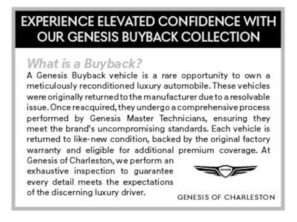 *Dealer discount savings assumes all incentives and manufacturer's rebates such as but not limited to Military, College Grad, Finance Rebates or Incentives, Bonus Cash, and or other incentives not listed above. All offers are contingent on qualified credit. Not all will qualify, Must finance through dealer-provided lender to receive the online advertised price. Offers cannot be combined with Special or Low APR or any other incentives. See dealer for details. For a limited time.* Please know that advertised selling price of the vehicle does not include all the products and services. Ceramic Coating $2988, Elite Plus Plan $998, Window Tint $598, CarRx $298, Closing fee $719, Certification $998 to $1998. It is the customer's sole responsibility to verify the existence and condition of any equipment listed. Neither the dealership nor dealer website provider are responsible for misprints on prices or equipment. While great effort is made to ensure the accuracy of the information on this site, errors do occur so please verify information with a customer service rep. Customers must mention advertised price to receive the advertise price. For In-Transit inventory, any date of arrival is estimated. The actual date of delivery may vary due to circumstances beyond Genesis and the dealer’s control. Please contact your local Genesis dealer for availability details.