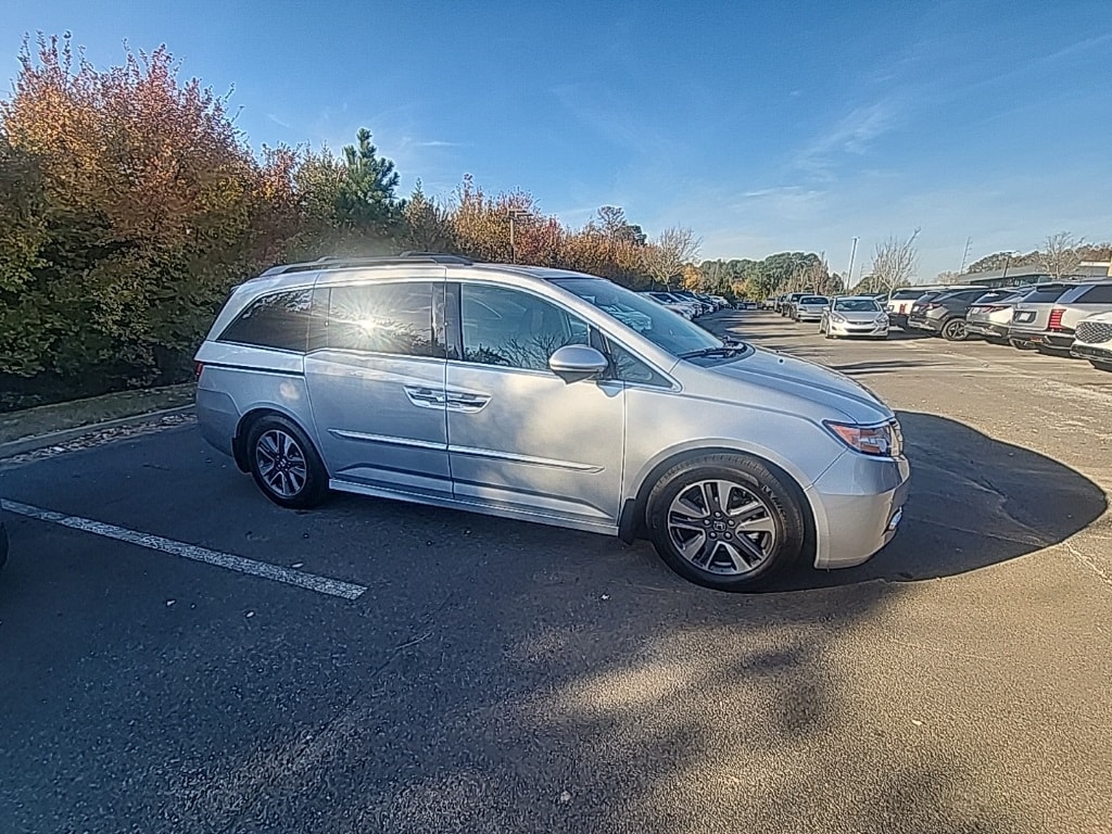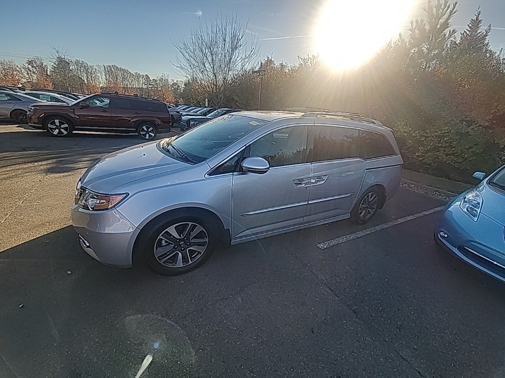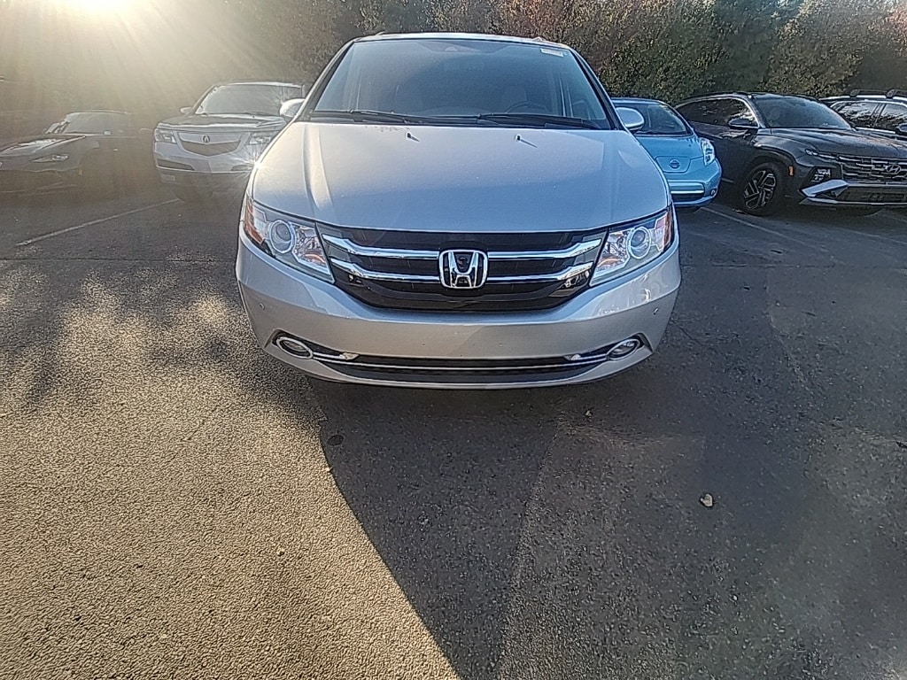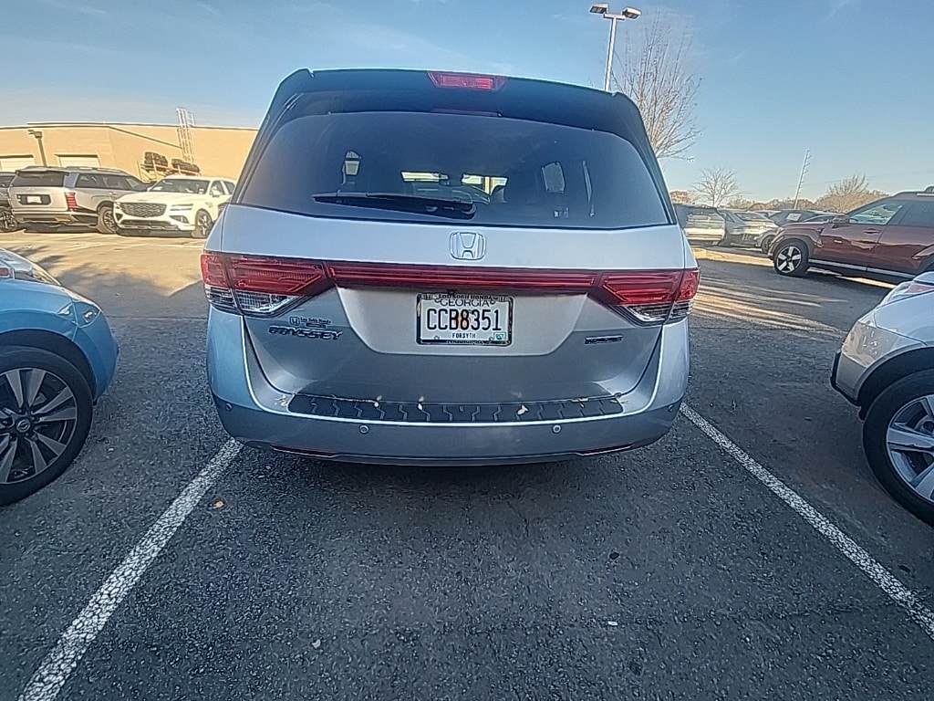 2015 Honda Odyssey FWD 6-Speed Automatic 3.5L V6 SOHC i-VTEC 24V 18" x 7" Alloy Wheels, 3rd row seats: split-bench, 4-Wheel Disc Brakes, 4.25 Axle Ratio, A/V remote, ABS brakes, Air Conditioning, Alloy wheels, AM/FM radio: SiriusXM, Anti-whiplash front head restraints, Auto-dimming Rear-View mirror, Automatic temperature control, Brake assist, Bumpers: body-color, CD player, Compass, Delay-off headlights, Driver door bin, Driver vanity mirror, Driver's Seat Mounted Armrest, Dual front impact airbags, Dual front side impact airbags, DVD-Audio, Electronic Stability Control, Exterior Parking Camera Rear, Four wheel independent suspension, Front anti-roll bar, Front Bucket Seats, Front dual zone A/C, Front fog lights, Front reading lights, Garage door transmitter: HomeLink, Headphones, Heated door mirrors, Heated Front Bucket Seats, Heated front seats, Illuminated entry, Leather Seat Trim, Leather Shift Knob, Leather steering wheel, Low tire pressure warning, Memory seat, Navigation System, Occupant sensing airbag, Outside temperature display, Overhead airbag, Overhead console, Panic alarm, Passenger door bin, Passenger seat mounted armrest, Passenger vanity mirror, Power door mirrors, Power driver seat, Power Liftgate, Power moonroof, Power passenger seat, Power steering, Power windows, Radio data system, Rear air conditioning, Rear audio controls, Rear reading lights, Rear seat center armrest, Rear window defroster, Rear window wiper, Reclining 3rd row seat, Remote keyless entry, Security system, Speed control, Speed-sensing steering, Speed-Sensitive Wipers, Split folding rear seat, Spoiler, Steering wheel mounted audio controls, Tachometer, Telescoping steering wheel, Tilt steering wheel, Traction control, Trip computer, Turn signal indicator mirrors, Variably intermittent wipers.