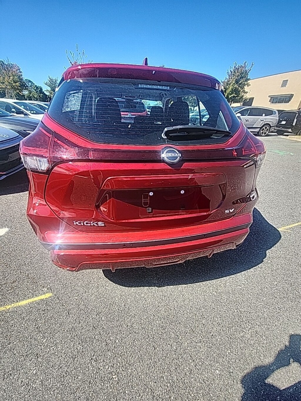2023 Nissan Kicks SV FWD CVT with Xtronic 1.6L 4-Cylinder DOHC 16V 17" Alloy Wheels, 3.93 Axle Ratio, 4-Wheel Disc Brakes, 6 Speakers, ABS brakes, Air Conditioning, Alloy wheels, AM/FM radio: SiriusXM, Apple CarPlay/Android Auto, Auto High-beam Headlights, Blind Spot Warning, Brake assist, Bumpers: body-color, Carpeted Floor Mats w/Cargo Mat, Cloth Seat Trim, Driver door bin, Driver vanity mirror, Dual front impact airbags, Dual front side impact airbags, Electronic Stability Control, Front anti-roll bar, Front Bucket Seats, Front Center Armrest, Front reading lights, Front wheel independent suspension, Fully automatic headlights, Heated door mirrors, Illuminated entry, Knee airbag, Low tire pressure warning, Occupant sensing airbag, Outside temperature display, Overhead airbag, Panic alarm, Passenger door bin, Passenger vanity mirror, Power door mirrors, Power steering, Power windows, Radio data system, Radio: AM/FM Audio System, Rear Parking Sensors, Rear reading lights, Rear side impact airbag, Rear window defroster, Rear window wiper, Remote keyless entry, Speed control, Splash Guards Grain (4 Piece), Split folding rear seat, Sport steering wheel, Steering wheel mounted audio controls, Tachometer, Telescoping steering wheel, Tilt steering wheel, Traction control, Trip computer, Variably intermittent wipers, Wheels: 17" Black Alloy.