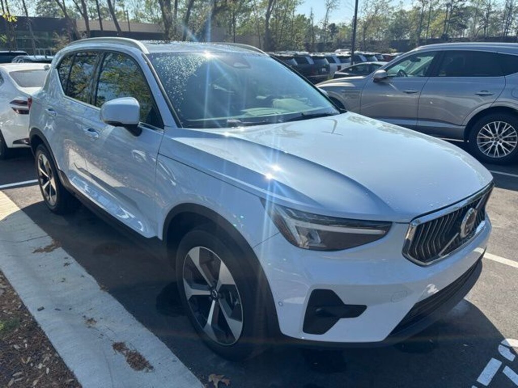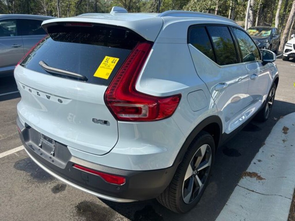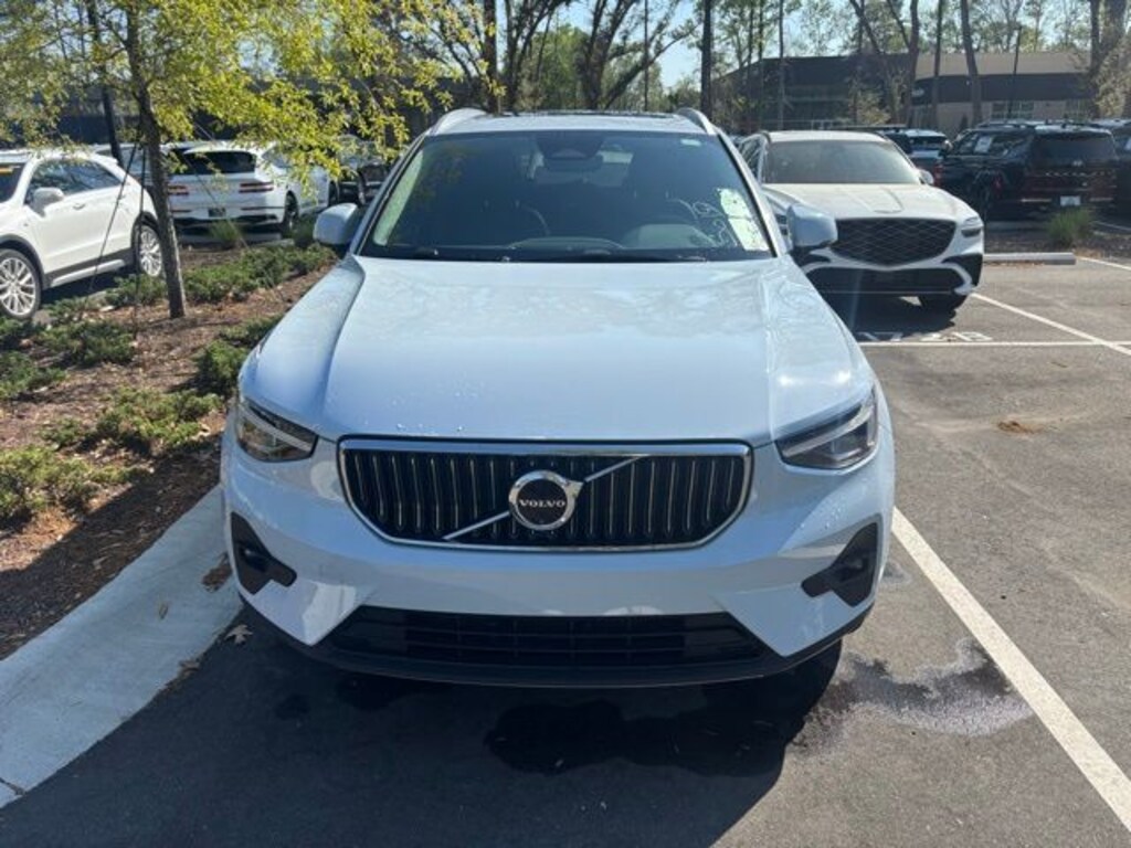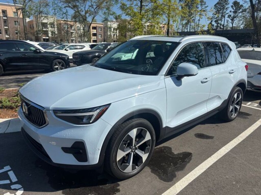 Cloud Blue 2024 Volvo XC40 B5 Plus Bright Theme AWD Automatic with Geartronic 2.0L I4 Turbocharged DOHC 16V LEV3-ULEV70 4-Wheel Disc Brakes, 8 Speakers, ABS brakes, All-Weather Floor Mats, Apple CarPlay, Auto High-beam Headlights, Auto-dimming door mirrors, Auto-dimming Rear-View mirror, Brake assist, Cargo Tray, Delay-off headlights, Dual front impact airbags, Dual front side impact airbags, Electronic Stability Control, Emergency communication system, Exterior Parking Camera Rear, Four wheel independent suspension, Front anti-roll bar, Front Bucket Seats, Front Center Armrest, Front dual zone A/C, Front fog lights, Fully automatic headlights, Garage door transmitter: HomeLink, Heated door mirrors, Heated Front Seats, Heated front seats, Illuminated entry, Internet access capable: Digital Services Package w/ 4 Year Subscription, Knee airbag, Leather Seating Surfaces, Low tire pressure warning, Navigation System, Occupant sensing airbag, Outside temperature display, Overhead airbag, Overhead console, Passenger vanity mirror, Power Liftgate, Power moonroof, Power passenger seat, Protection Package, Radio: 250W High Performance Audio System, Rain sensing wipers, Rear anti-roll bar, Rear fog lights, Rear seat center armrest, Rear window wiper, Remote keyless entry, Speed-sensing steering, Split folding rear seat, Steering wheel mounted audio controls, Tachometer, Telescoping steering wheel, Tilt steering wheel, Traction control, Variably intermittent wipers, Wheels: 19" 5-Y Spoke Matte Graphite Alloy.